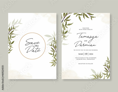 Wedding invitation template with watercolor foliage