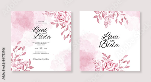 Wedding invitation templates with watercolor flowers and splashes