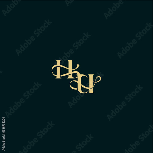 wedding logo initial bold concept design letter elegant and curvy style monogram HU