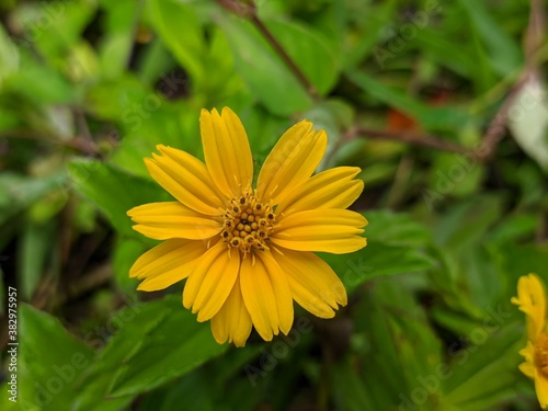 Wedelia flower (Sphagneticola trilobata) Grows wild and fertile in the tropical climate of Borneo