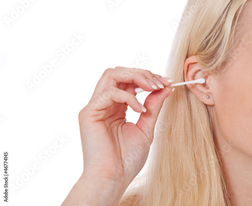 ear, listening, clean, bodycare, hygiene, release, person, female, woman, european, blond