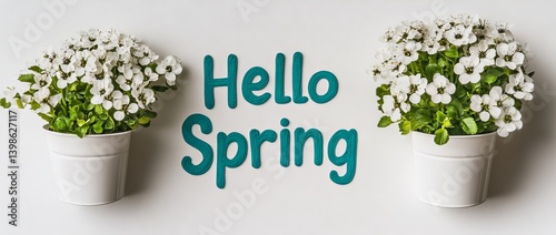 Welcome, spring! Message; modern, clean white floral border design