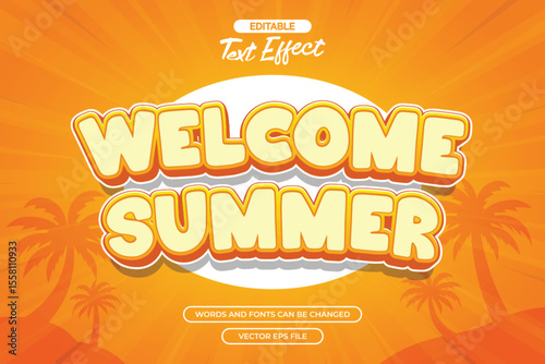Welcome summer editable text effect with cartoon text style and with orange comic background