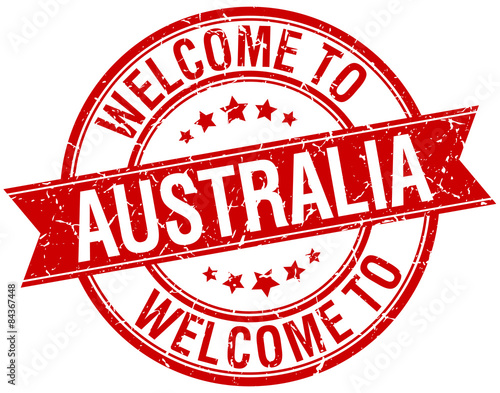 welcome to Australia red round ribbon stamp
