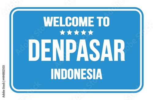 WELCOME TO DENPASAR - INDONESIA, words written on blue street sign stamp