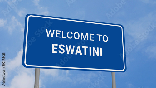 Welcome to Eswatini Road Sign on Clear Blue Sky