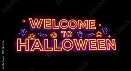 halloween, neon, signs, welcome, text, glowing, holiday, skittish, autumn, fall, celebration, october, night, party, design, graphic, illustration, banner, decoration, light, vibrant, orange, purple, black, background, festive, fun, ghost, pumpkin, bat, trick or treat, holiday season, greeting, invitation, event, seasonal, dark, typography, symbol, happy, cheerful, bright, element, graphic design, isolated, retro