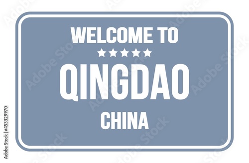 WELCOME TO QINGDAO - CHINA, words written on gray street sign stamp