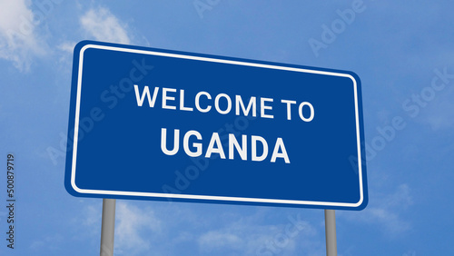 Welcome to Uganda Road Sign on Clear Blue Sky