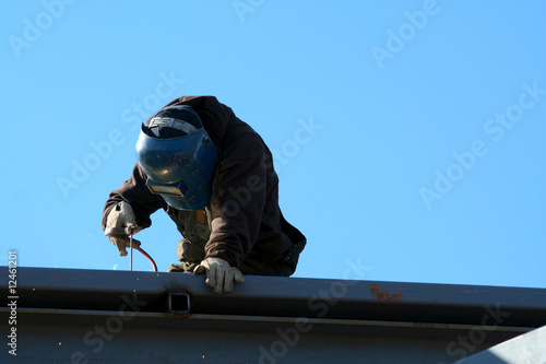 welder, industry, welding, industrial, protection, light, spark, metal, craftsman, men at work, manufacture, man, construction, labor, work, smoke, steel, mask, weld, fire, flash, fabricate, repair, job, assembly, manufacturing, blue, sky