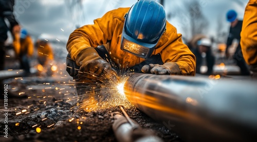 welding, welder, metal, industry, construction, spark, work, industrial, safety, manufacturing, men at work, pipeline, process, steel, equipment, engineering, technology, craftsman, profession, fabrication, flames, building, job, hard hat, uniform, heavy, skilled, construction worker, protect, labor, workshop, project, site, metalwork, professional, production, infrastructure, metallurgy, construction site, powerful, strong, laboring, craft, fire