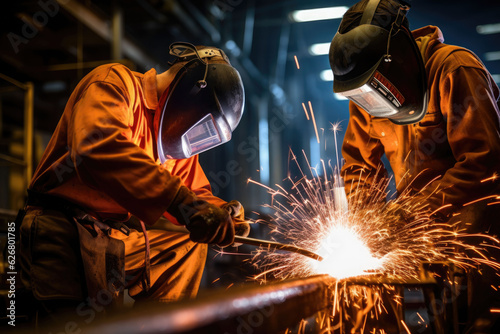 Welders working welding together in the construction site