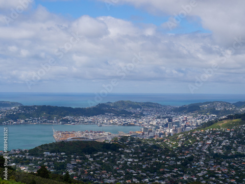 Wellington City and Harbor Skyline View from Mt Kaukau, New Zealand