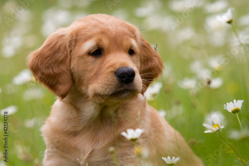golden retriever, retriever, puppy, dog, flower, daisy, portrait, daisy, sweet, summer, spring