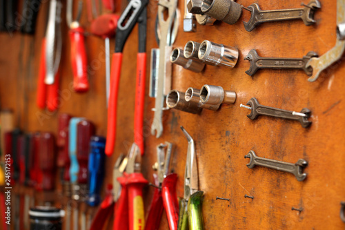 garage, instrument, screwdriver, forceps, craft, helper, screw, work, forest, aged, screwdriver, metallic, colourful, craftsman, craft, training, red, patina, wall, shelf, board, symbol, steel, close-up view, closeup, foreground, assistance, fortification, detail, blurred, stainless