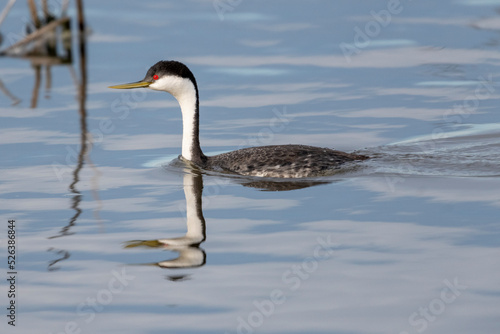 Western grebe (Aechmophorus occidentalis) swimming, Frank Lake, Alberta, Canada