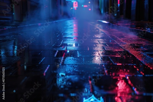 Wet City Street at Night with Neon Lights