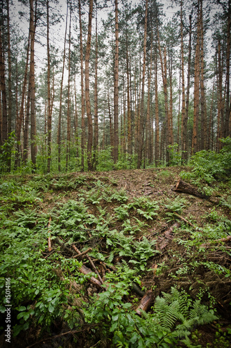 wet fern in forest