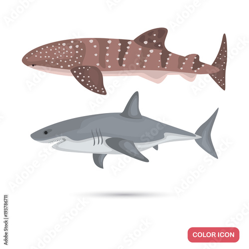 Whale and White sharks color flat icons set