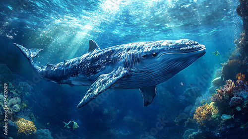 whale, humpback whale, coral reef, ocean, underwater, marine life, fish, colourful, vibrant, tropical, blue, turquoise, sunlight, marin, nature, wildlife, animal, sea, aquatic, underwater photography, coral, reef, tropical fish