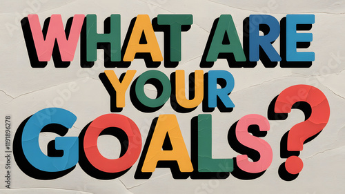 "What Are Your Goals?" text in vibrant multicolored typography on a cracked paper background with bold shadows.