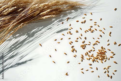 Wheat grains with ears isolated on a white background