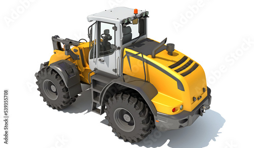 Wheel Loader heavy construction machinery 3D rendering on white background