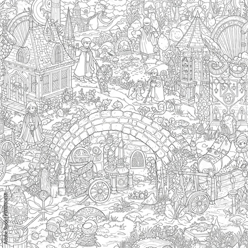 Where darkness dances with wonder. Explore a world of strange beasts and hidden magic in this captivating coloring book page.