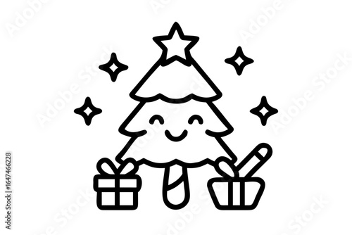 christmas tree, silhouette, cartoon, whimsical, holiday, festive, decoration, ornament, bauble, star, present, gift, candy cane, holly, chaplet, snowflake, snowman, reindeer, santa, elf, angel, winter, celebration, greeting, card, background, transparent, graphic, vector, icon, symbol, design element, festive season, seasonal, traditional, cute, playful, cheerful, merry