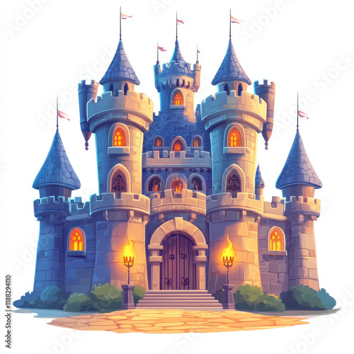 architecture, tower, castle, building, travel, fairy, gothic, old, sky, fairy tale, ancient, city, exterior, famous, evening, fortress, church, dusk, tour tourism, landmark, citadel, traditional, historical building, culture, narrative, kremlin, turning point, art, sightseeing, brick, fantasy, tower, stone, flag, whimsical, mediaeval, entrance, torch, landscape, colourful, illustration