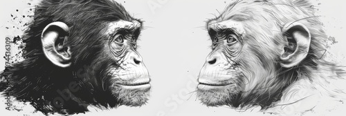 monkey, head, face, hand, drawn, illustration, engraving, ink, vignetting, animal, wildlife, jungle, portrait, whimsical, fun, playful, cute, cartoon, design, art