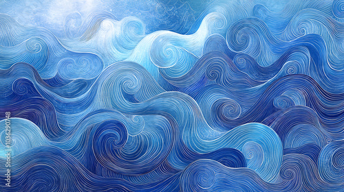 ocean, wave, illustration, blue, whimsical, abstract, art, swirling, sea, water, texture, pattern, design, nature, fluid, movement, artistic, creative, background, marin, tranquil, oceanic, flowing, digital, graphic, serene, vibrant, light, deep, contemporary, visual, decorative