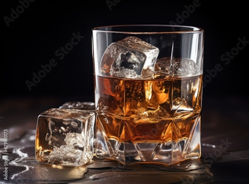 whiskey glass with ice cubes