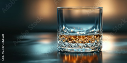Whiskey in a crystal glass resting on a dark surface with soft backlighting creating an inviting atmosphere