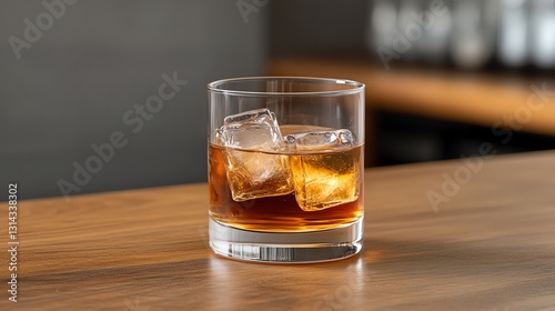 Whiskey on the Rocks Glass of Amber Liquor with Ice Cubes