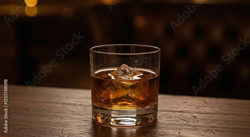 whiskey, rock, glasses, ice, drink, alcohol, bar, liqueur, brown, amber, gold, dark, wood, top, night, evening, cosy, relaxing, single, serving, cold, refreshment, beverage, spirit, booze, pub, eatery, lounge, chill, delicious, tasty, strong, mature, vintage, still, life, picture, mood