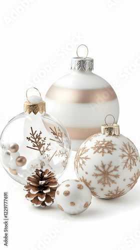 ornament, christmas, decoration, gold, white, festive, holiday, winter, bauble, christmas, celebration, tree, decor, design, season, sparkle, shine, elegant, luxury, ball, sphere, snowflake, pine cone, berry, glistering, beautiful, happy, joy, merry, new year, gift, present, background, style, image, photo