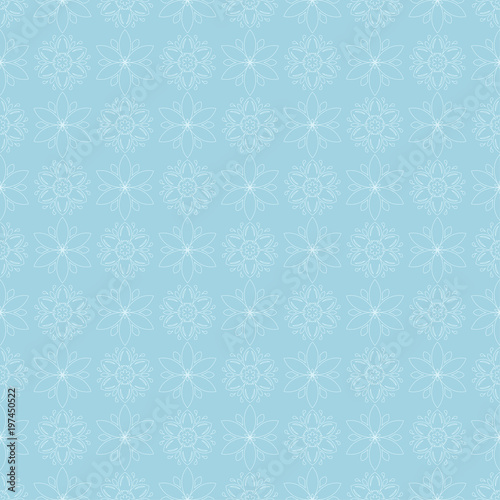 White and blue floral ornament. Seamless pattern