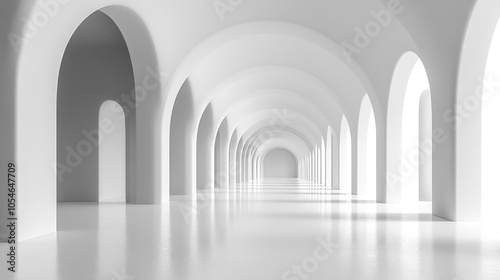 white, archway, corridor, hallway, arch, column, pillar, floor, reflective, glossy, smooth, light, bright, minimalist, modern, contemporary, architecture, design, interior, empty, space, perspective, line, pattern, abstract, simple, clean, geometric, symmetric, building, structure, room, background, wall, ceiling, texture, surface, contrast, depth, dimension, shape, form, straight, curve, horizontal, vertical, shadow