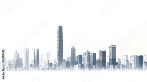 White background, city skyline, vector illustration style, simple lines, high-end aesthetic, light gray and white color scheme, urban architecture