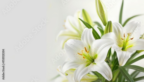 White background featuring Easter lilies, highlighting their delicate petals springtime elegance
