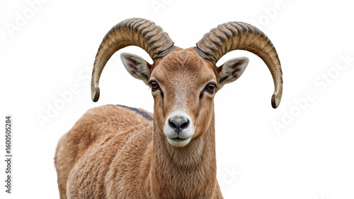 White Background Image of Mouflon Lamb (Ovis gmelini) with Copy Space. Wild Sheep Graphic for Nature and Mountain-Themed Creations. PNG File
