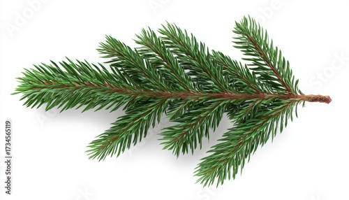 White Background With Beautiful Christmas Tree Branch. Festive Decorative Element Perfect For Holiday Design Projects And Winter Celebrations. Branch On White.