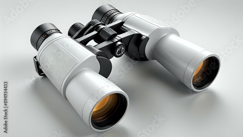 binocular, white, isolated, background, optic, zoom, vision, travel, nature, birding, exploration, hunting, camping, sport, adventure, equipment, tool, lens, view, see, distant, closeup, detail, macro, product, object, technology, photo, design, modern, classic, minimalist, clean