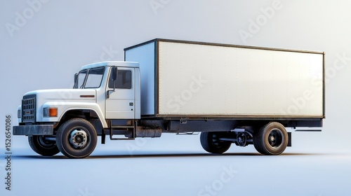 truck, box, white, delivery, transport, cargo, commercial, vehicle, shipping, freight, logistic, transportation, modern, classic, isolated, studio, blank, empty, advertising, design, three-dimensional, rendering, side, profile, front, rear, cab, body, good, moving, business, industrial, equipment, heavy, duty, trucking, service