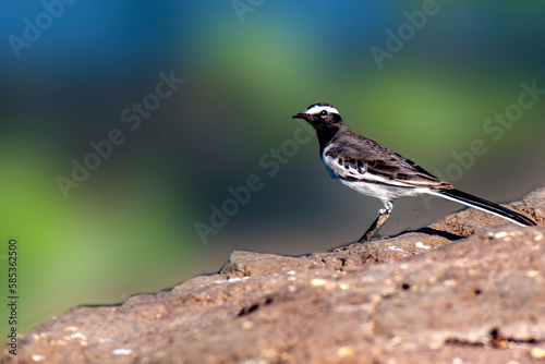 White browed Wagtail on the rock at bank of river