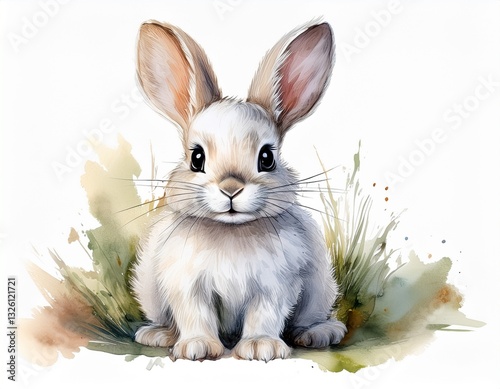 White bunny isolated on white background, watercolor illustration. Generated image