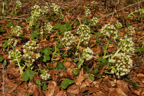 White butterbur in Bohemian Forest,Klatovy district,Plzen region,West Bohemia,Czech Republic,Europe,Central Europe