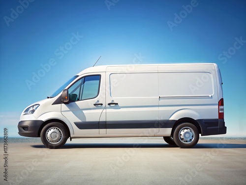 van, vehicle, transportation, half face, horizontal, commercial vehicle, parking, transport, business, delivery, logistic, shipping, automotive, white, car, truck, road, street, city, town, countryside, background, clean, modern, new, empty, blank, space, driveway, car park, building, outside, daytime, sun, sky, roadside, freelance, entrepreneur, small business, service, rental, lease, fleet, industry, work