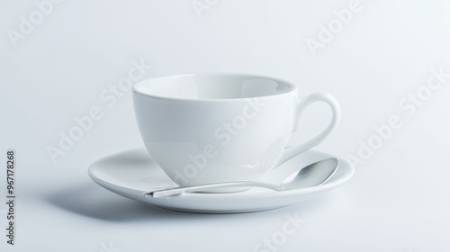 White Ceramic Coffee Cup on Saucer on Minimalist Table Surface